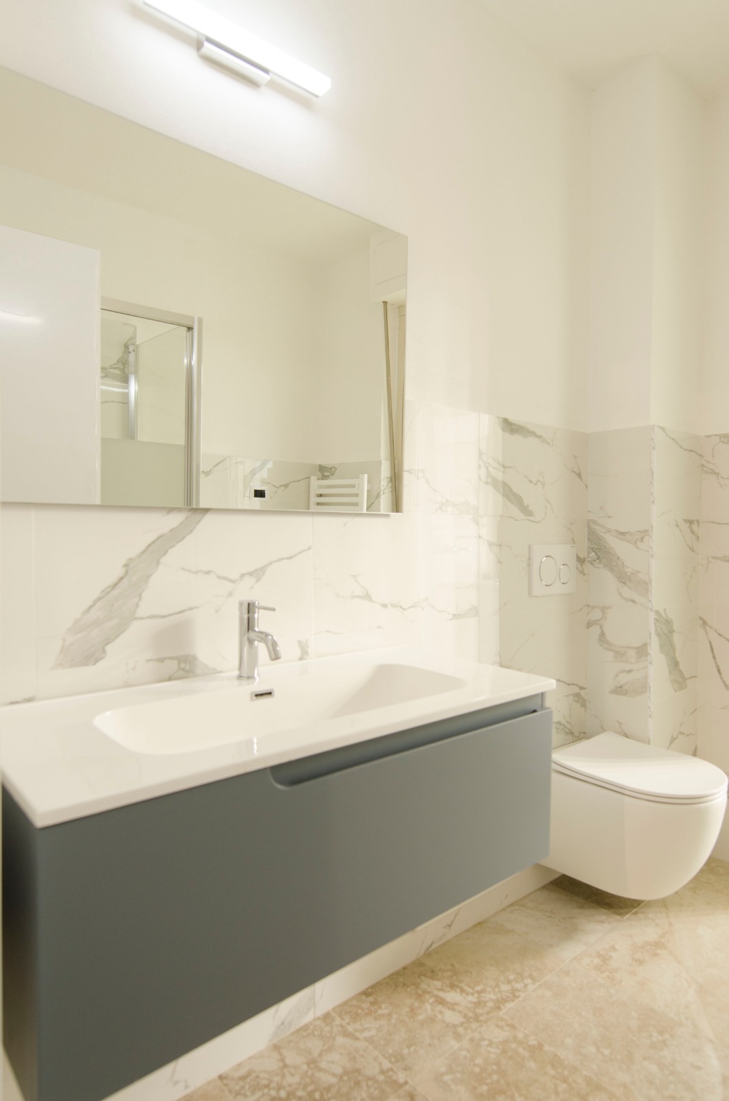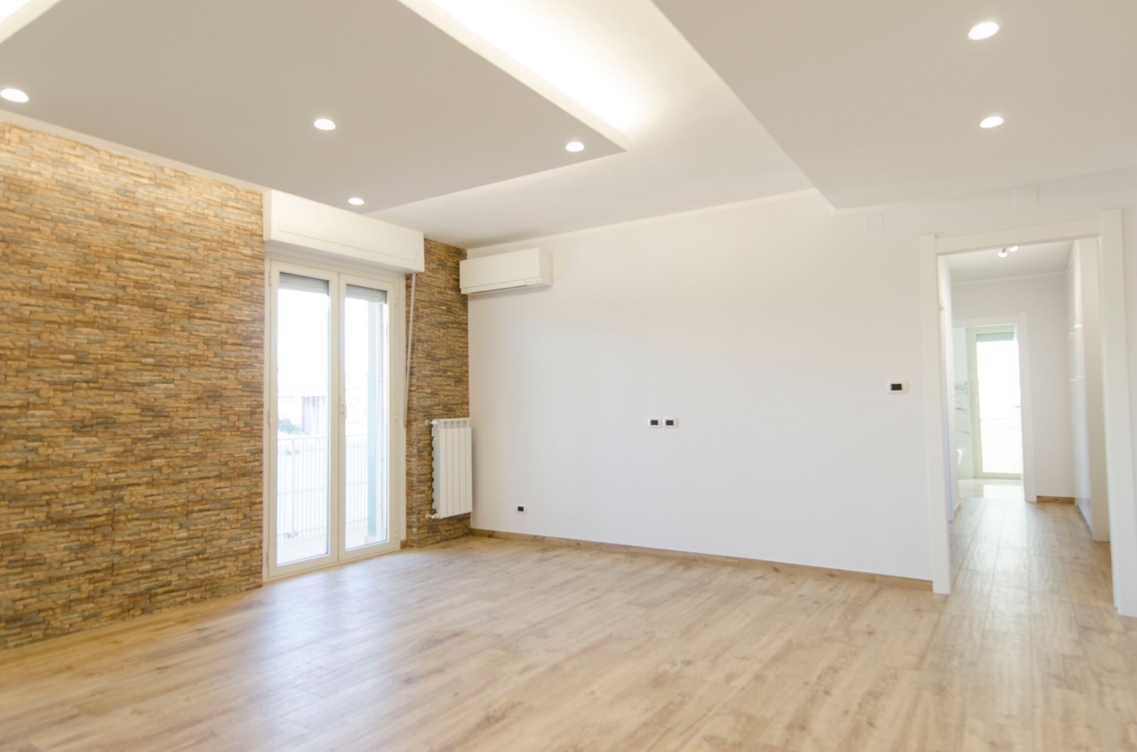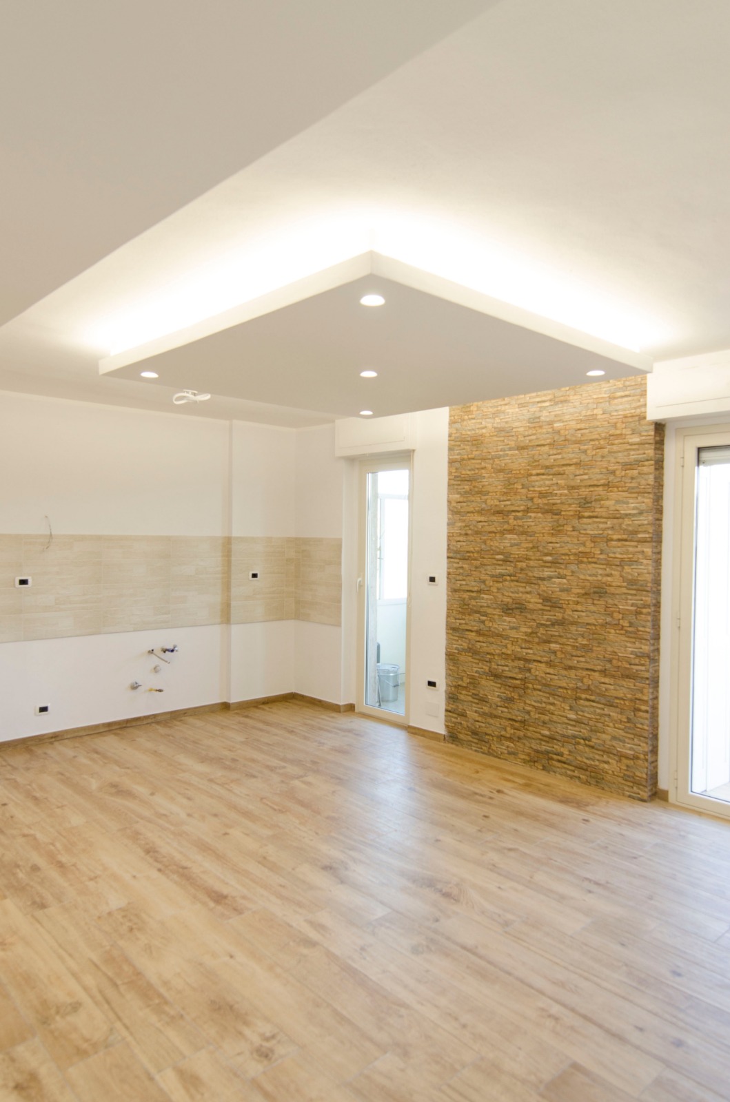 Progetto di ristrutturazione di un appartamento a Sassari. Grazie ad un restyling completo in chiave moderna e luminosa l'appartamento viene completamente rinnovato. Cucina e soggiorno vengono uniti per realizzare un ampio open space. Il rifacimento del pavimento in gres porcellanato Marazzi dona una finitura di alta qualità. L'ampliamento e ridistribuzione degli spazi continuano con il rifacimento completo del bagno in chiave moderna con gres effetto marmo. La controsoffitatura in cartongesso con illuminazione tramite faretti ad incasso e strip led conferisce inoltre ai nuovi ambienti un'illuminazione di gran classe in chiave contemporanea.