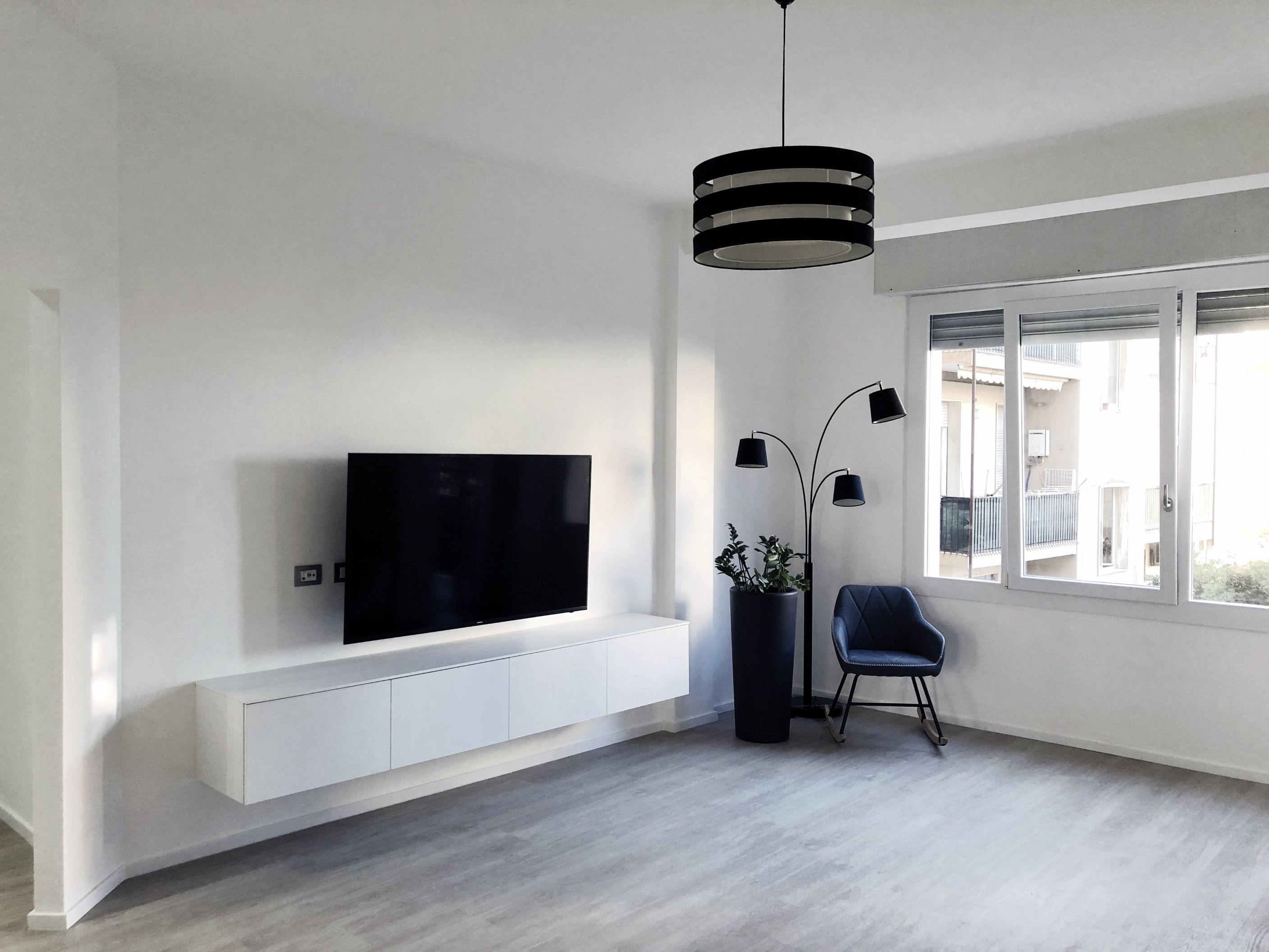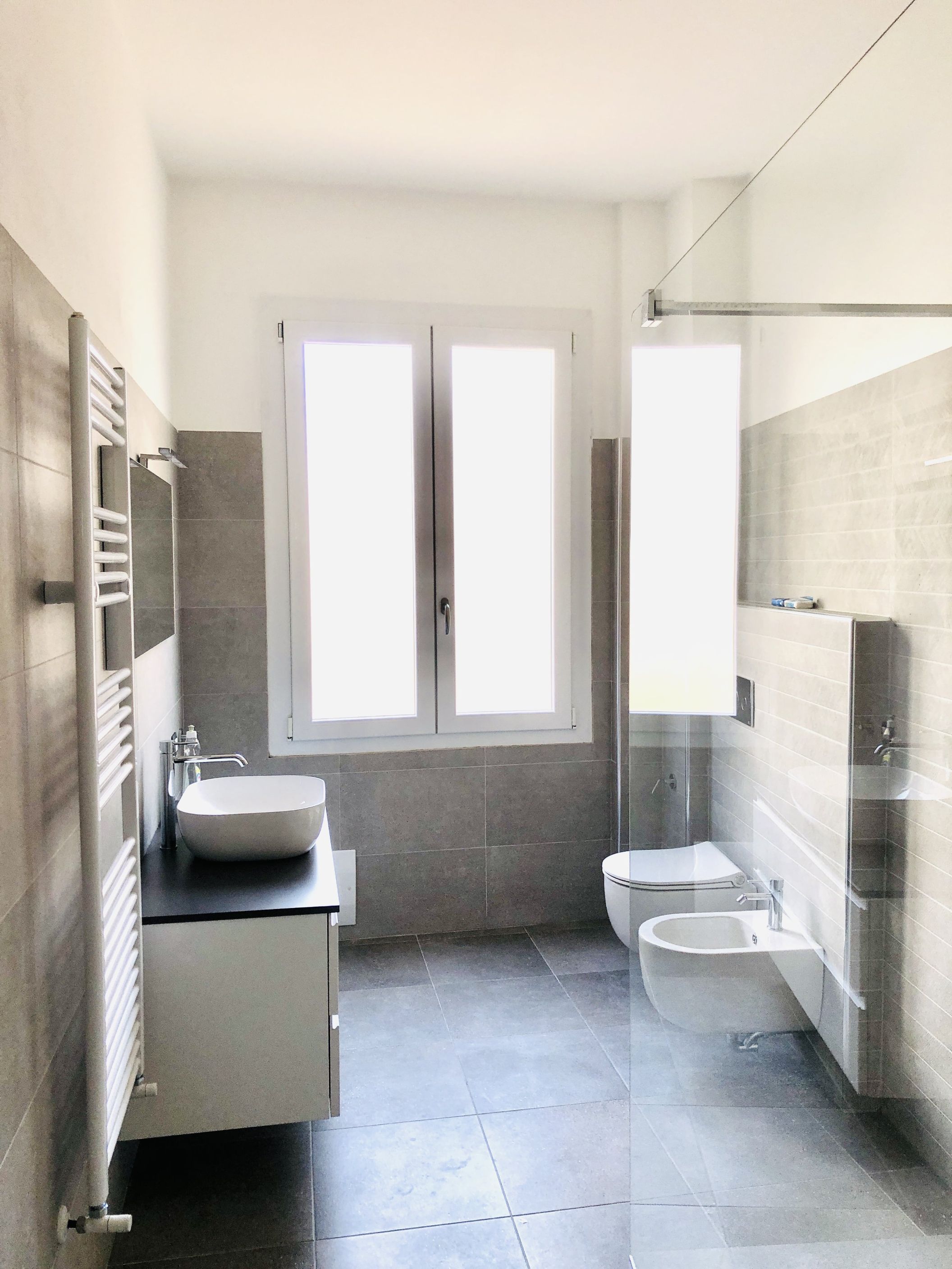 Progetto di ristrutturazione di un appartamento a Sassari. Pochi elementi per rinnovare totalmente una casa con un grande potenziale, ma poco valorizzata. Il progetto delinea così i nuovi spazi, attraverso l'ampliamento del soggiorno eliminando parte del corridoio e collegandolo alla cucina Scavolini. Elementi chiavi del progetto sono la completa ristrutturazione del bagno, la realizzazione di un secondo bagno, posa di parquet prefinito e rasatura delle pareti con conseguente pittura. Le finiture di alta qualità fornite da Porcelanosa sono state molto apprezzate dai committenti, così come i mobili bagno, i sanitari e la rubinetteria, anch’essi firmati Porcelanosa. Sono inoltre state sostituite tutte le porte con nuove porte bianco opaco in chiave moderna.