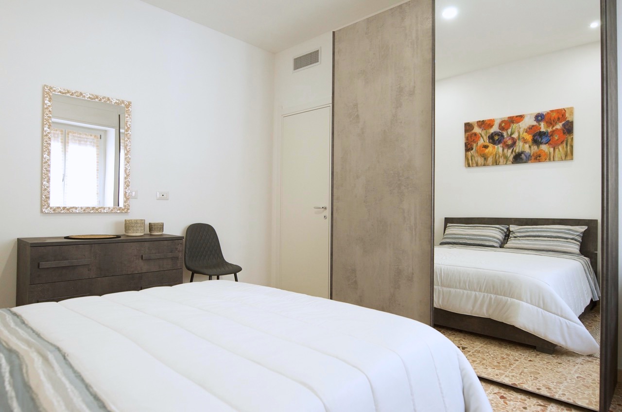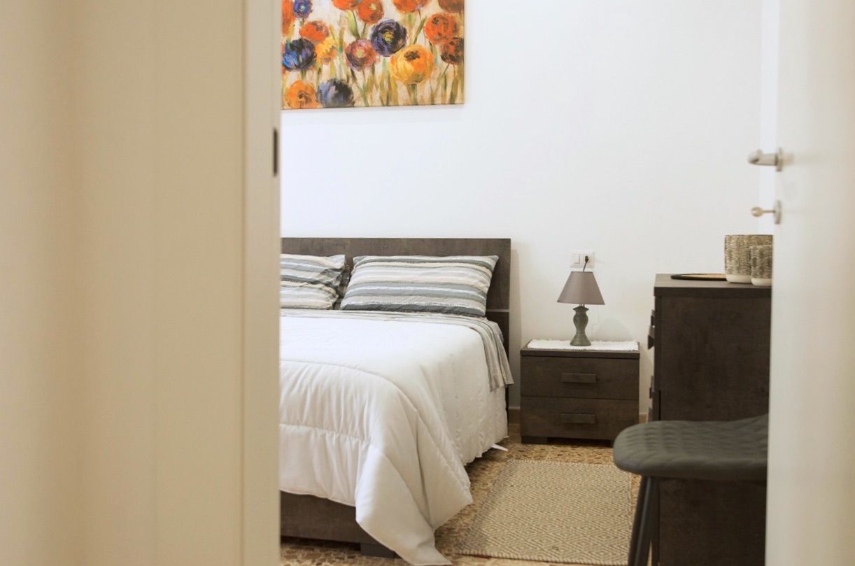 Progetto di ristrutturazione di un appartamento ad Alghero. Il progetto riguarda la ristrutturazione completa di un appartamento di 50 mq nel centro di Alghero, con risanamento conservativo del solaio e mantenimento del pavimento originale esistente in graniglia mediante accurata levigatura e lucidatura. Gli ambienti acquistano nuova luce tramite il rinnovamento completo degli spazi, la realizzazione di due camere da letto, l'ampliamento e la ristrutturazione del bagno, la realizzazione di un controsoffitto in cartongesso come elemento di illuminazione e realizzazione di un impianto di condizionamento canalizzato che serve tutto l'appartamento tramite le bocchette di areazione del controsoffitto. Infissi esterni ed interni anch'essi rinnovati con porte moderne bianco laccato e finestre in pvc bianco ad alta prestazione termica.